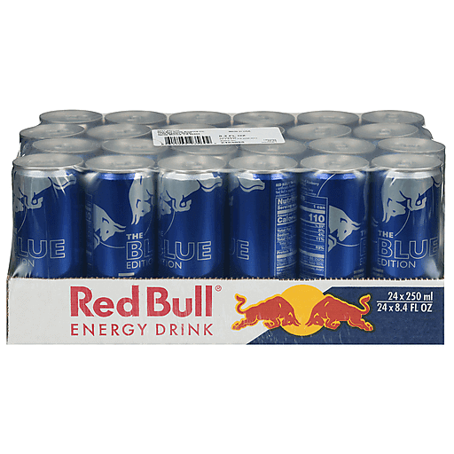 Red Bull Blue Edition Blueberry Energy Drink gives you Wiiings whenever you need them. Red Bull Blue Edition is a lightly carbonated energy drink with a blend of caffeine, taurine, B vitamins, real sugar and water with the fruity taste of blueberry.* With 110 calories per 8.4 fl oz can, Red Bull is great for any occasion. While aiming for great heights during your workday, in your workouts or when gaming, why not crack open a refreshing can of Red Bull? Drink Red Bull straight from the can or enjoy in a glass over ice. This 24-pack of Red Bull will keep you stocked for any occasion, whether it’s hanging with friends, watching the game or going on a road trip. Be ready for the big moments with a can of Red Bull. Store these cans of Red Bull at room temperature or toss them in the fridge. Red Bull gives you Wiiings. Always check can labels for most updated product nutritional and ingredient information. Calcium and sugars values declared on labels may vary slightly depending on production locations. Always check can labels for most updated product nutritional and ingredient information. Calcium and sugars values declared on labels may vary slightly depending on production locations.