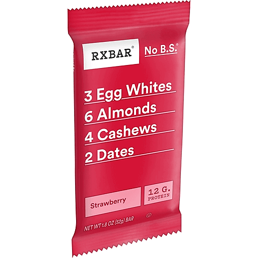 Our Strawberry Protein Bars are made with just five ingredients: dates, egg whites, almonds, cashews, and sweet, juicy strawberries. This gluten free, guilt-free protein bar is the perfect wholesome snack for any active lifestyle. Each bite is bursting with real strawberry flavor combined with simple, real ingredients. Enjoy 12g of protein per bar (22% daily value) and 0g added sugar (not a low-calorie food, see nutrition facts for sugar and calorie content); Savor this protein bar at breakfast time, lunch time, or as a pre- or post-workout snack. Devour the whole bar or save some for later, each bar is an on-the-go protein snack packed with fuel to help you make it through your day. Other protein bars, energy bars, and breakfast bars just can’t compare to the taste of only a few better-for-you ingredients. What you see is what you get with RXBAR Strawberry Protein Bars